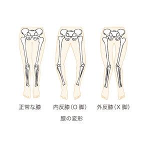 骨盤が傾くと、その上に乗っている背骨や下肢にも影響が出て、結果として膝に過剰な負担がかかる構造になります。
