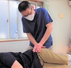 とくに大腿四頭筋(太ももの前側の筋肉)や内転筋群が硬くなっていたため、これらの過緊張を緩める施術を行いました。