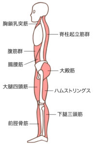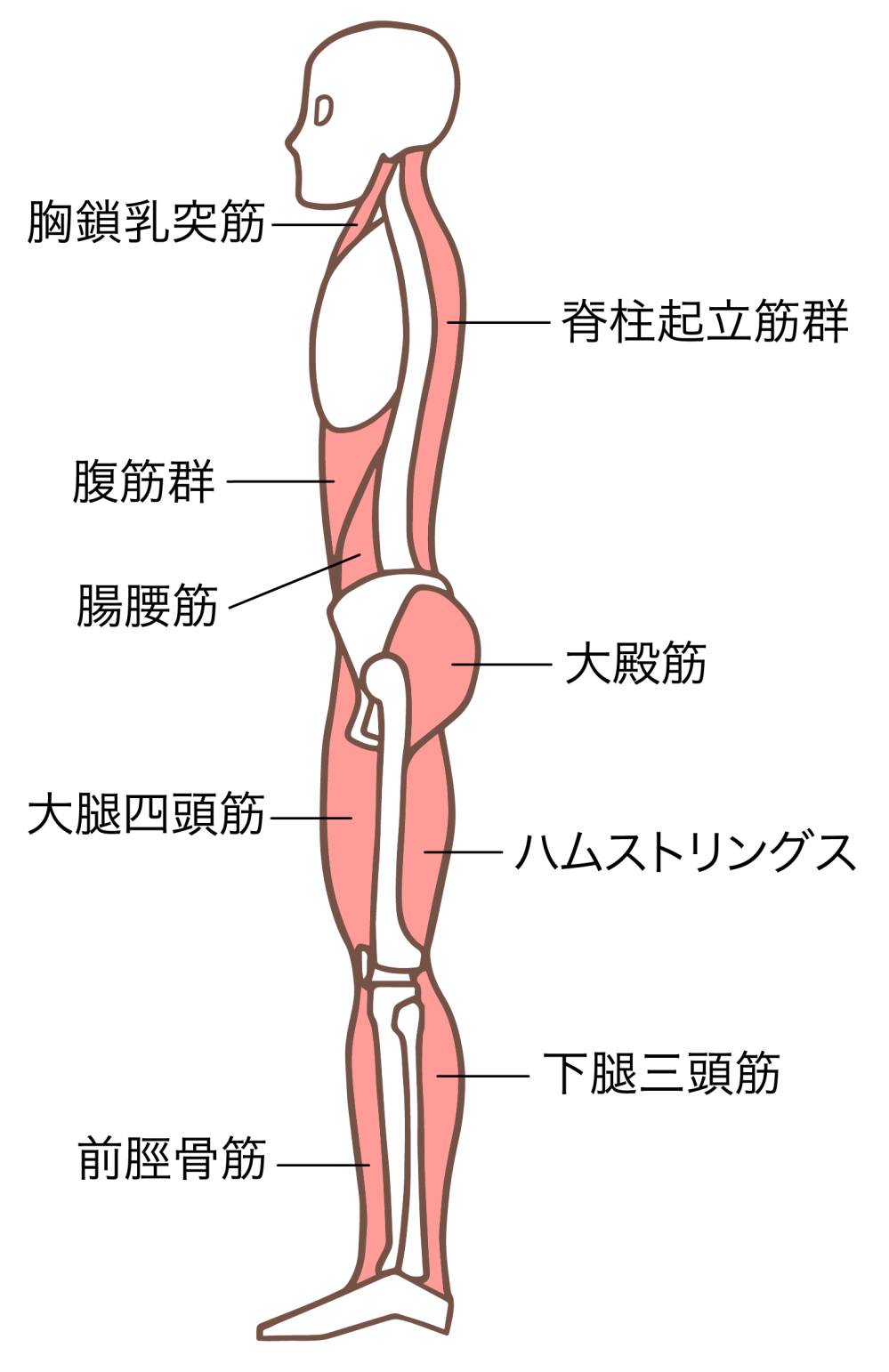 姿勢を保つこと、つまり正しい形で立つ・座る・歩くということは、筋肉を使って制御している動作です。