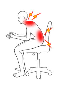 無理をしたり姿勢を崩して生活しているうちに痛みが増していく典型例です。