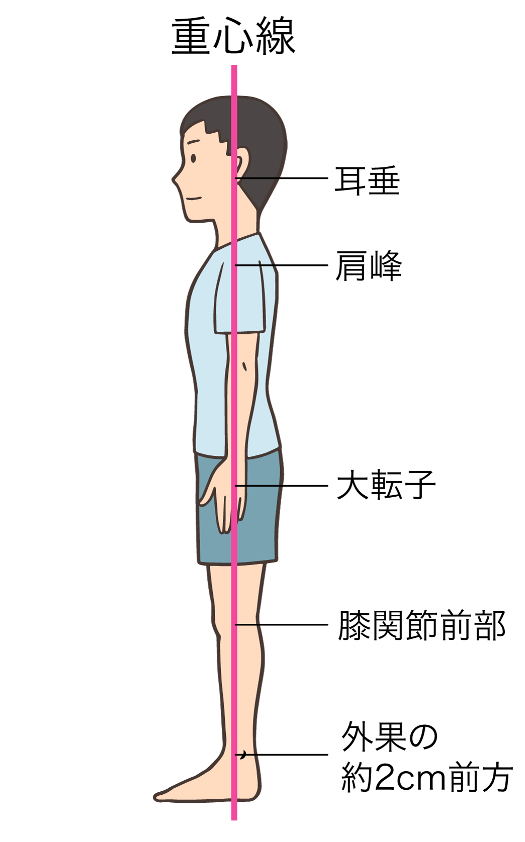 立位姿勢のチェックでは、重心がつま先側へ偏っていました。