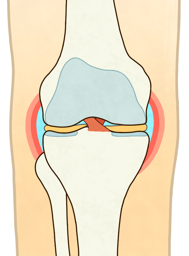今回のケースから考えられるのは、膝の関節がズレそうになるところを、そうならないように膝まわりの筋肉や靭帯が支え続けた結果、限界を超えて痛みが出たということです。