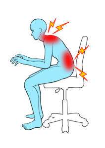 その状態で急に立ち上がったり前かがみになったりすると、腰に負担が集中し、ギックリ腰を起こしやすくなります。