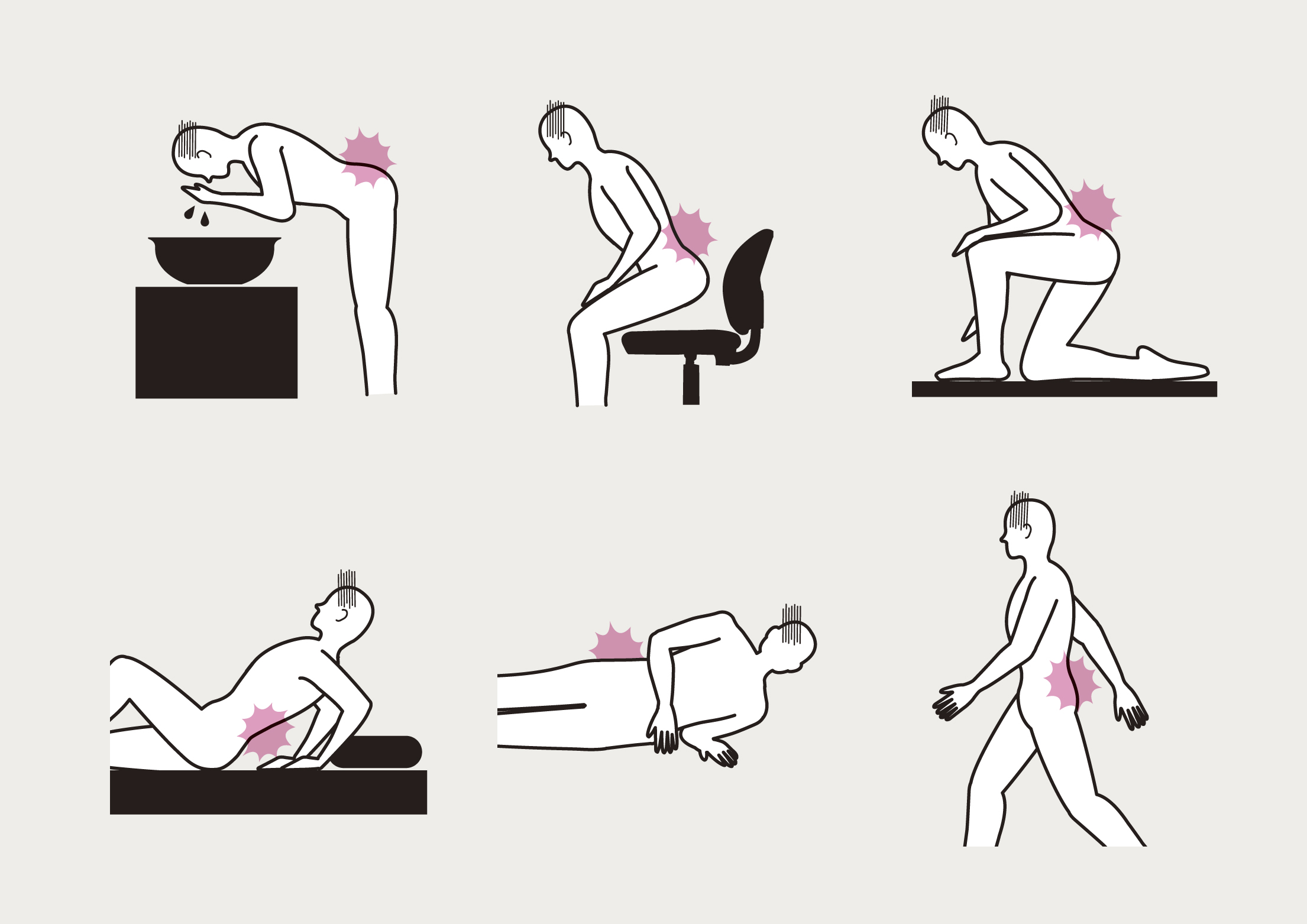 最初にギックリ腰を起こしてから、完全に治ったという感覚がないまま日常生活を送っており、背筋を伸ばそうとすると腰にピキッとした痛みが走るため、「またギックリ腰になるのではないか」という不安を常に感じていたそうです。