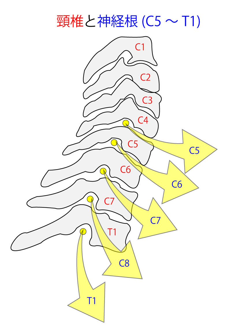 医学的にも、首の骨(頚椎)からは腕や手へとつながる神経が伸びています。