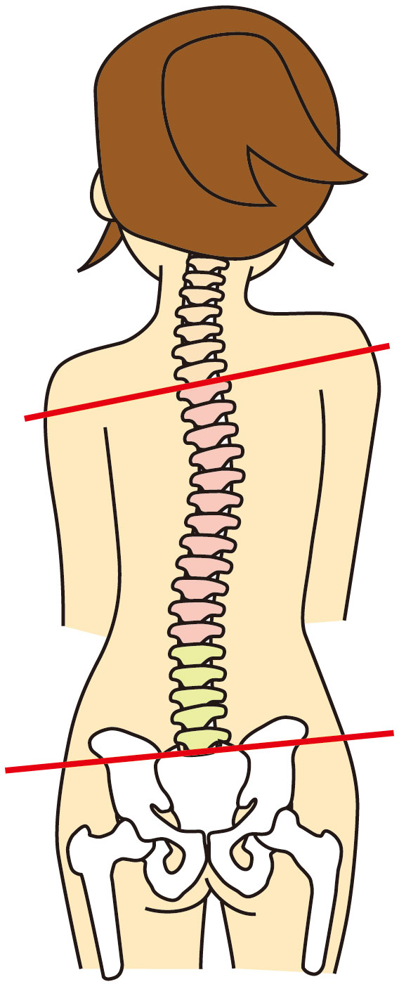 お体の状態を詳しく確認すると、骨盤の左側が高くなり、左肩が下がっていました。