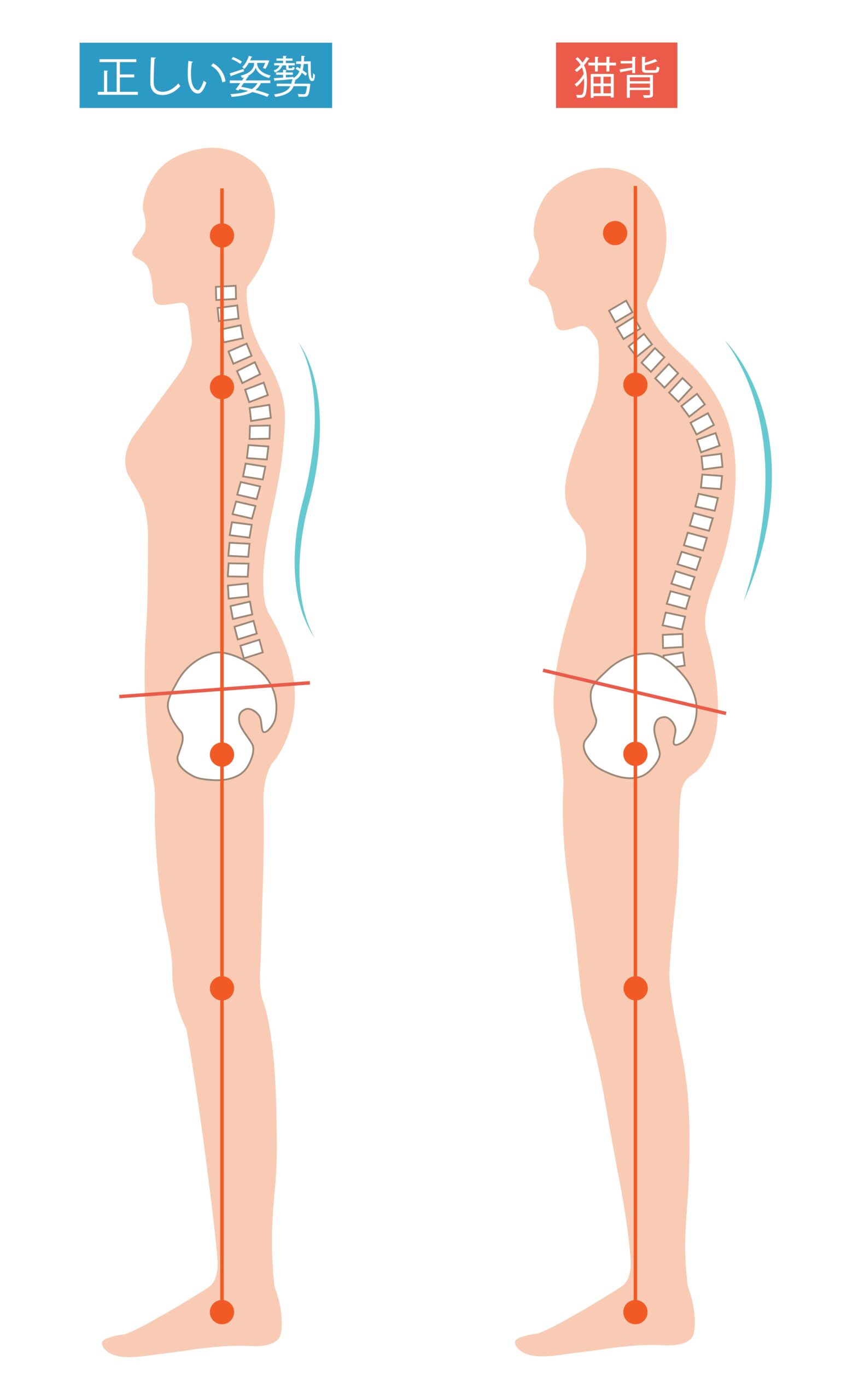 ●座るときに骨盤が後ろに倒れる姿勢になる